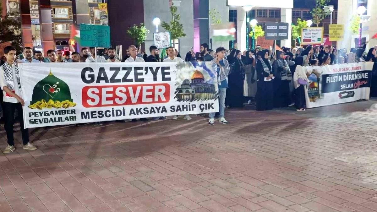 Muş’ta Peygamber Sevdalıları Platformu öncülüğünde düzenlenen ve bazı sivil toplum kuruluşlarının da katıldığı yürüyüşte, Hamas Siyasi Büro Başkanı İsmail Haniye’nin (58) İran’ın başkenti Tahran’da gerçekleştirilen suikastta hayatını kaybetmesinden dolayı yüzlerce kişi bir araya gelerek yaşananları kınadı.
