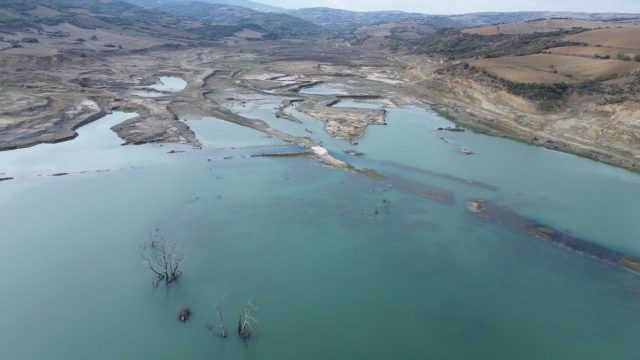 Su seviyesinin yüzde 1’in altına düştüğü barajda, ağaç kökleri ortaya çıktı, adacıklar oluştu. Kuruyan kısımlarda zeminin çatladığı barajda, bazı bölgelerde ise bataklık görüntüsünün oluştuğu görüldü.