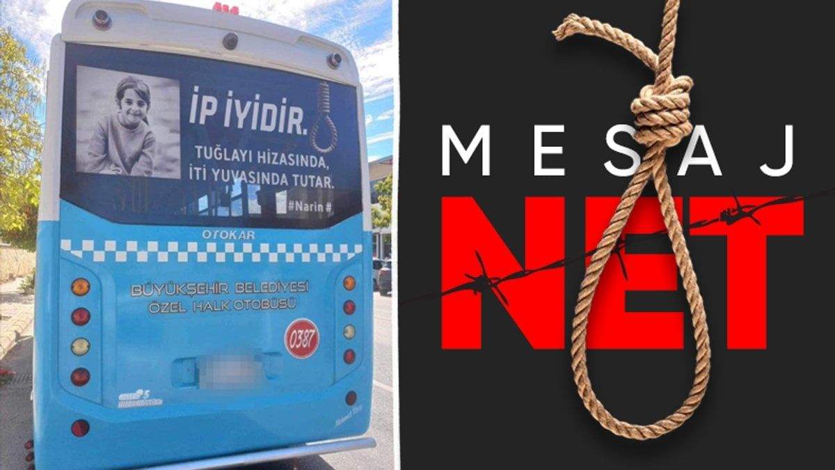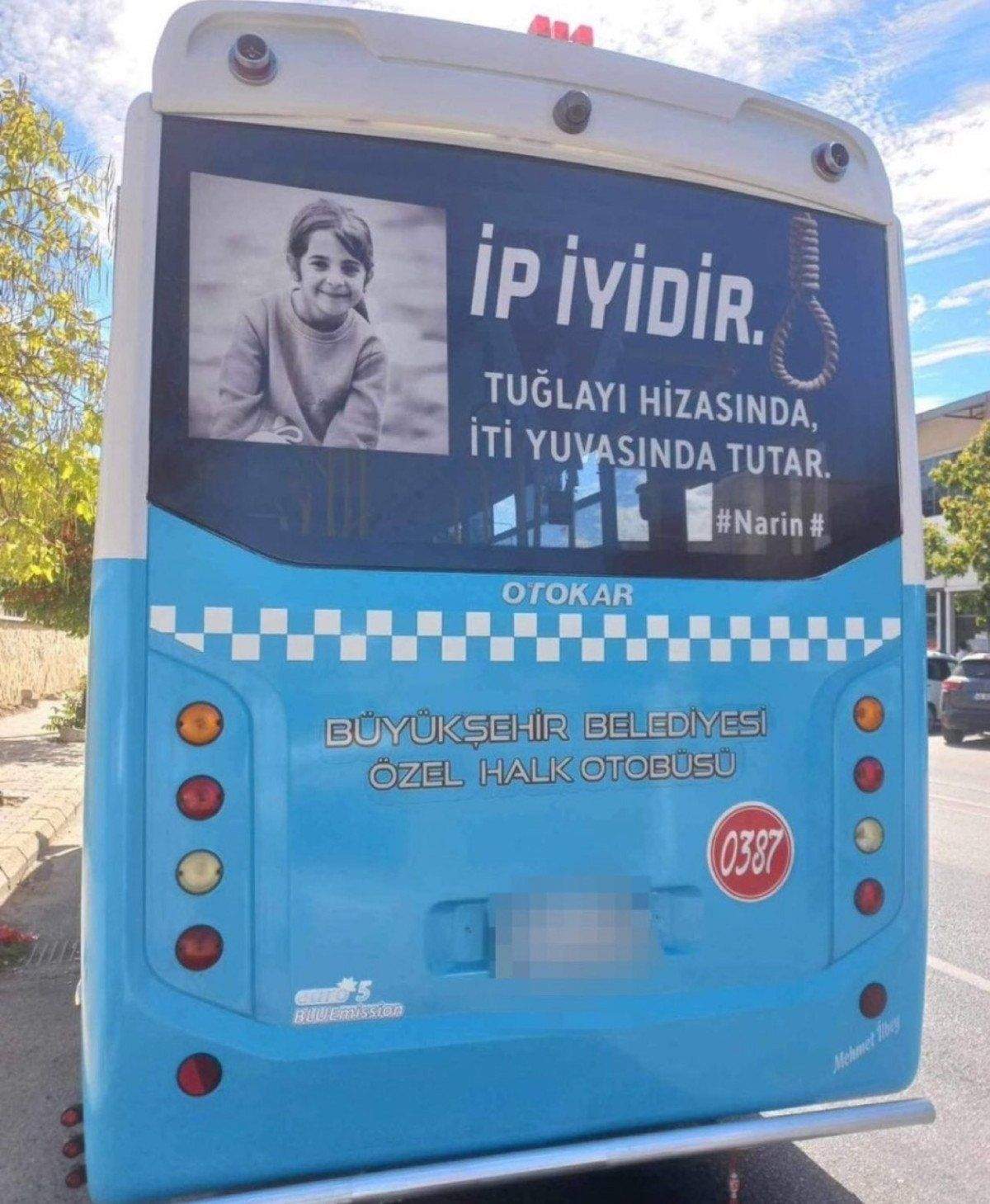 İki şehirde de görev yapan halk otobüsü şoförleri, araçlarına Narin’in fotoğrafını ve idam çağrılarını nakşetti.
