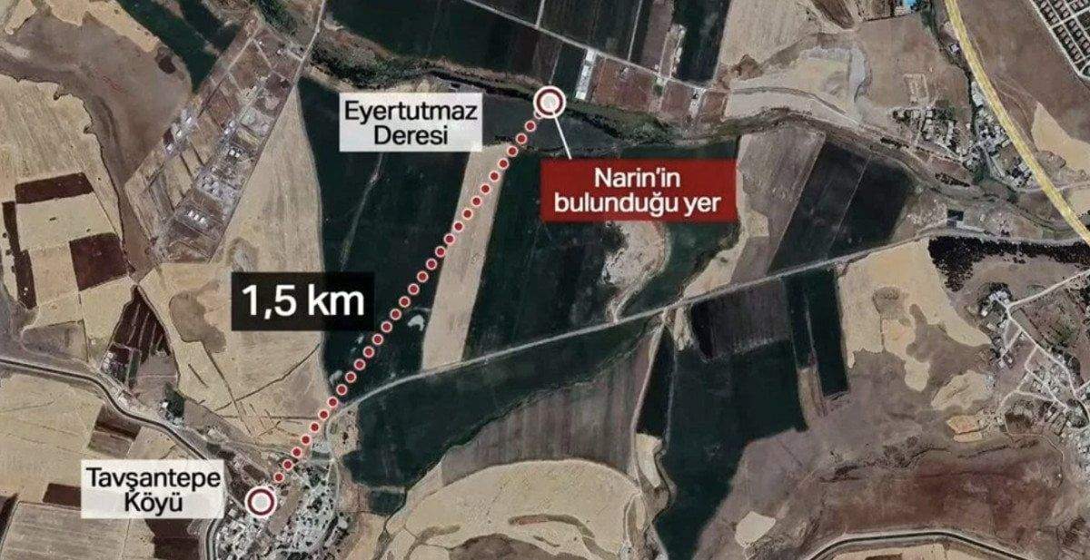 19 günlük arayışın sonucunda evine 2 kilometre uzaktaki Eğertutmaz Deresi yatağında bir çuval içinde Narin’in cansız bedenine ulaşıldı.