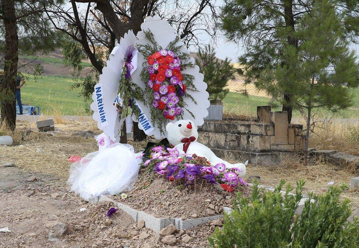 Narin’in mezarı başına gelenlerin bazıları gelinliklik bırakırken, bazıları da fotoğraf çektiriyor. Küçük kızın mezarı başında fotoğraf çektirenlere tepki yağıyor. Sosyal medyada tepki gösterenler, işin şova döküldüğünü söyledi.