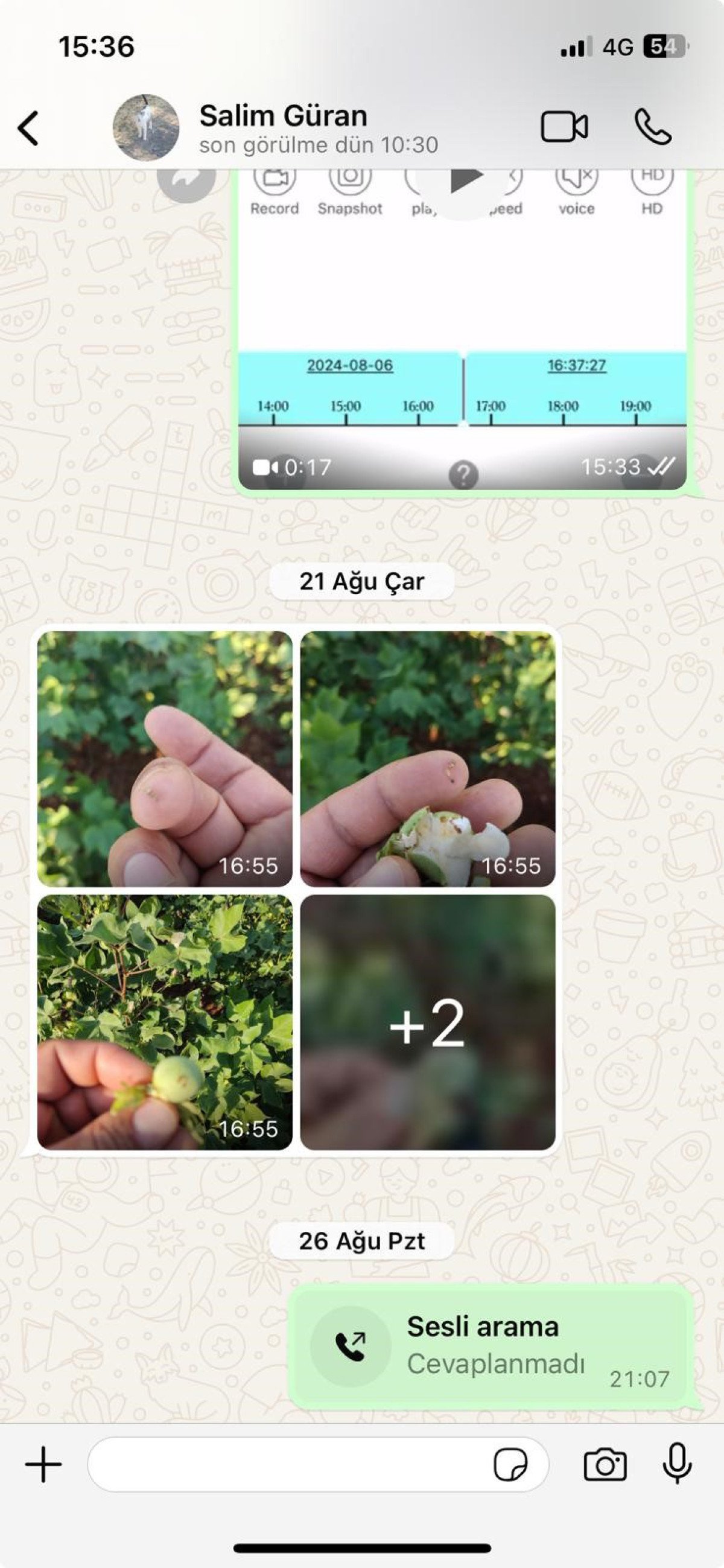 Diyarbakır’da çiftçilikle uğraşan Mehmet Şerif Güran, “Antalya-Kemer’de ailemle tatil yapıyordum. İlk aramayı saat 16.43’te yaptı. Köydeki pamuk tarlamın kurtlandığını söyledi. Saat 16.55’te tarladan fotoğraf atıp ‘İlaçlama yapayım mı?’ diye sordu.