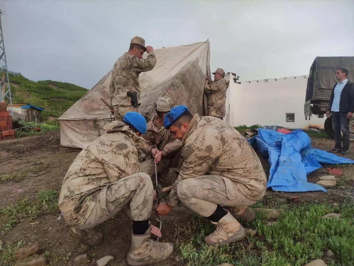 İlçede görev yapan jandarma ve polis ekipleri de evleri zarar görenlerin barınma ihtiyacını karşılamak için bazı noktalara çadır kurdu.