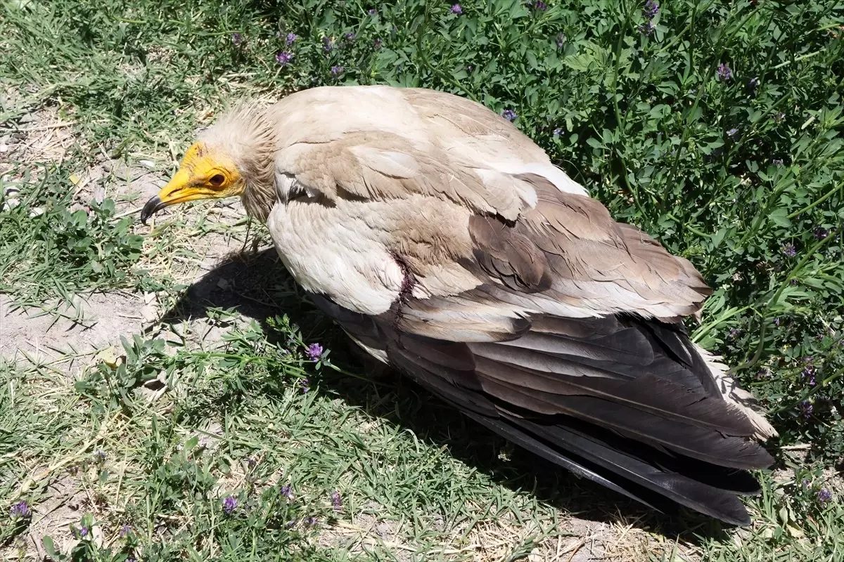 Malatya'da yol kenarında bulunan beyaz akbaba, tedavi için koruma merkezine götürüldü.