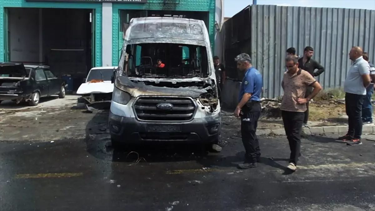 Sümer Mahallesi’ndeki Yeni Sanayi Sitesi’ndeki oto tamirhanesinde kaynak sırasında çıkan kıvılcımlar, minibüsün alev almasına neden oldu.