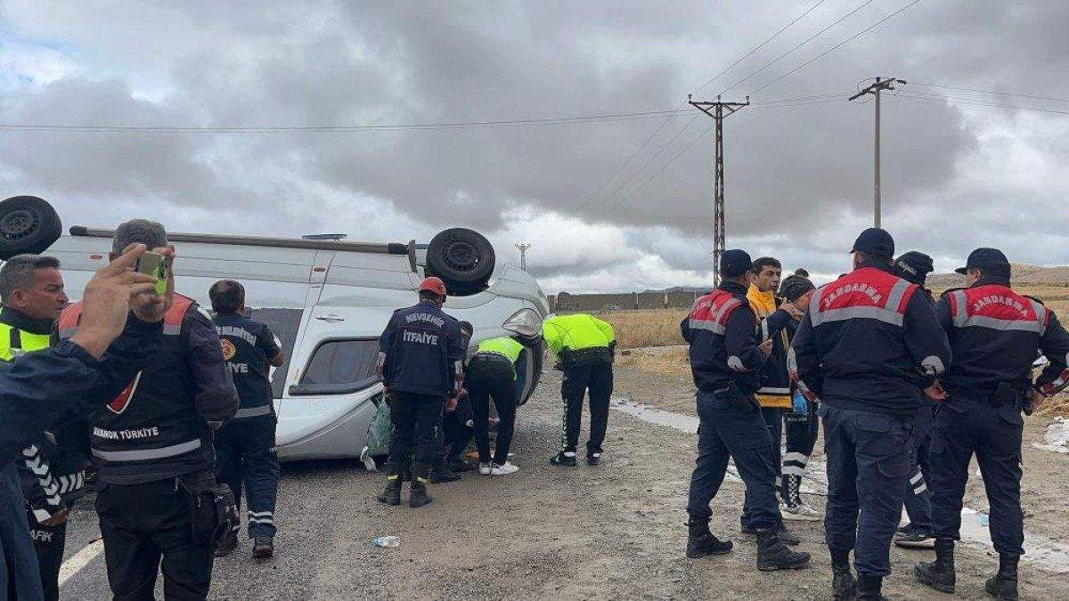 Nevşehir’de Acıgöl ilçesi OSB kavşağı yakınlarında meydana gelen trafik kazasında, Aydın Er E. idaresindeki 07 NEJ 84 plakalı Volkswagen marka minibüs, yağışlı havanın etkisiyle sürücüsünün direksiyon hakimiyetini kaybetmesi sonucu takla attı.