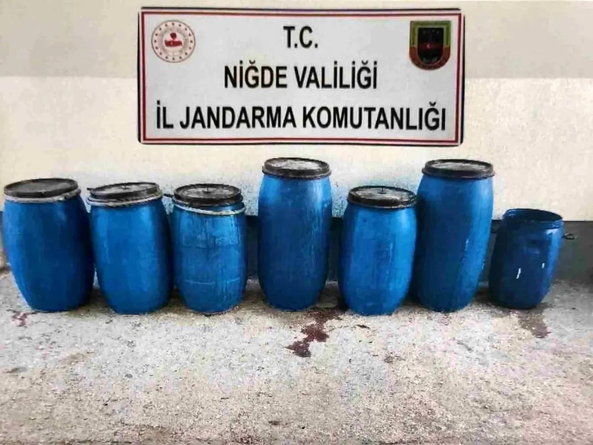 Niğde İl Jandarma Komutanlığı ekipleri tarafından yapılan çalışmalarda 920 litre kaçak şarap ele geçirildi.