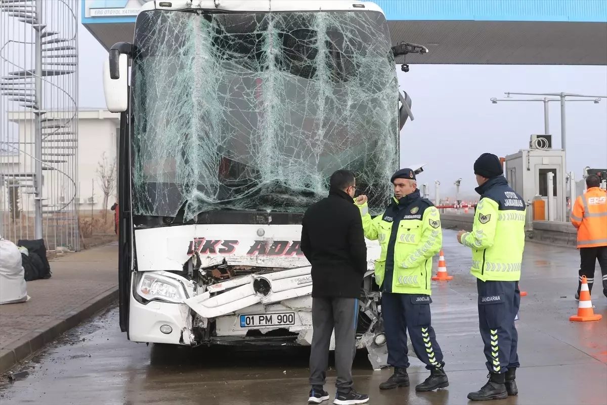 İstanbul’dan Adana’ya gittiği öğrenilen E.D. idaresindeki 01 PM 900 plakalı yolcu otobüsü, Niğde- Ankara Otoyolu Alın gişelerinde M.J. yönetimindeki WZ 844 HL yabancı plakalı tıra çarptı.