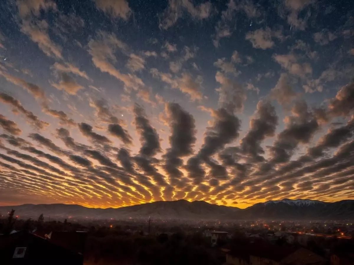 Kentte, sabahın ilk saatlerinde gökyüzünü sirrokümülüs bulutları kapladı. Güneşin doğuşuyla bulutlara yansıyan sarı ve kızıl tonları, arka planda mavi gökle güzel görüntü oluşturdu. Vatandaşlar, nadir görülen doğa olayını cep telefonuyla görüntüledi.