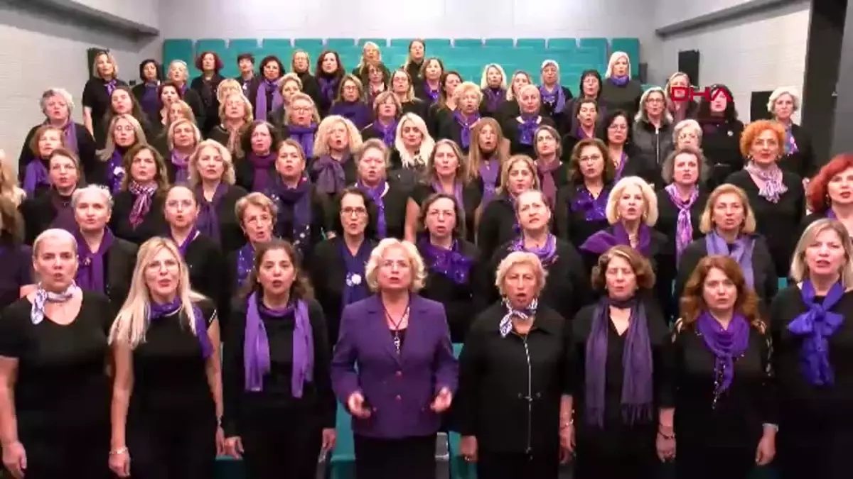 Bursa'da, 40 ile 75 yaşları arasındaki kadınlardan oluşan Nilüfer Kadın Korosu, '25 Kasım Kadına Yönelik Şiddete Karşı Uluslararası Mücadele Günü' kapsamında Aysel Gürel'in yazıp bestelediği 'Şiddetsiz Dünya' adlı şarkıyı seslendirdi.