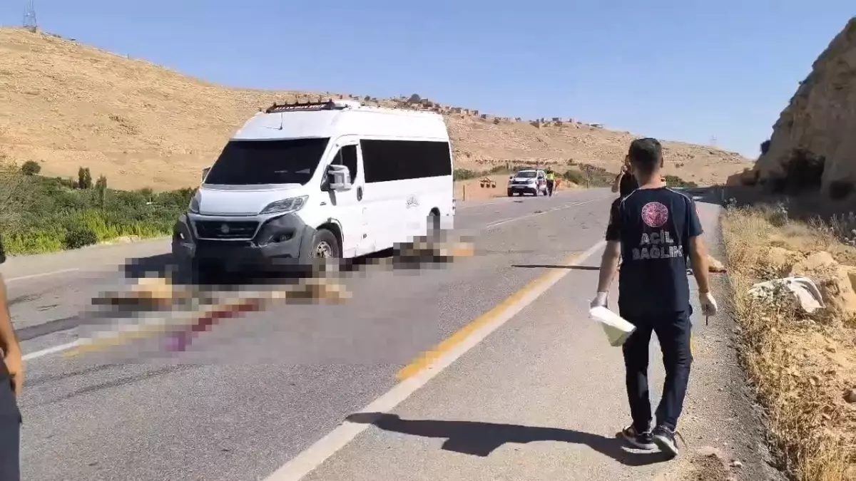 Nusaybin'de minibüs, yola çıkan hayvan sürüsüne çarparak 13 küçükbaş hayvanın ölümüne neden oldu.