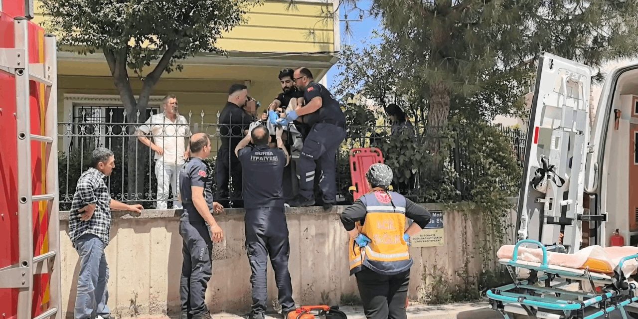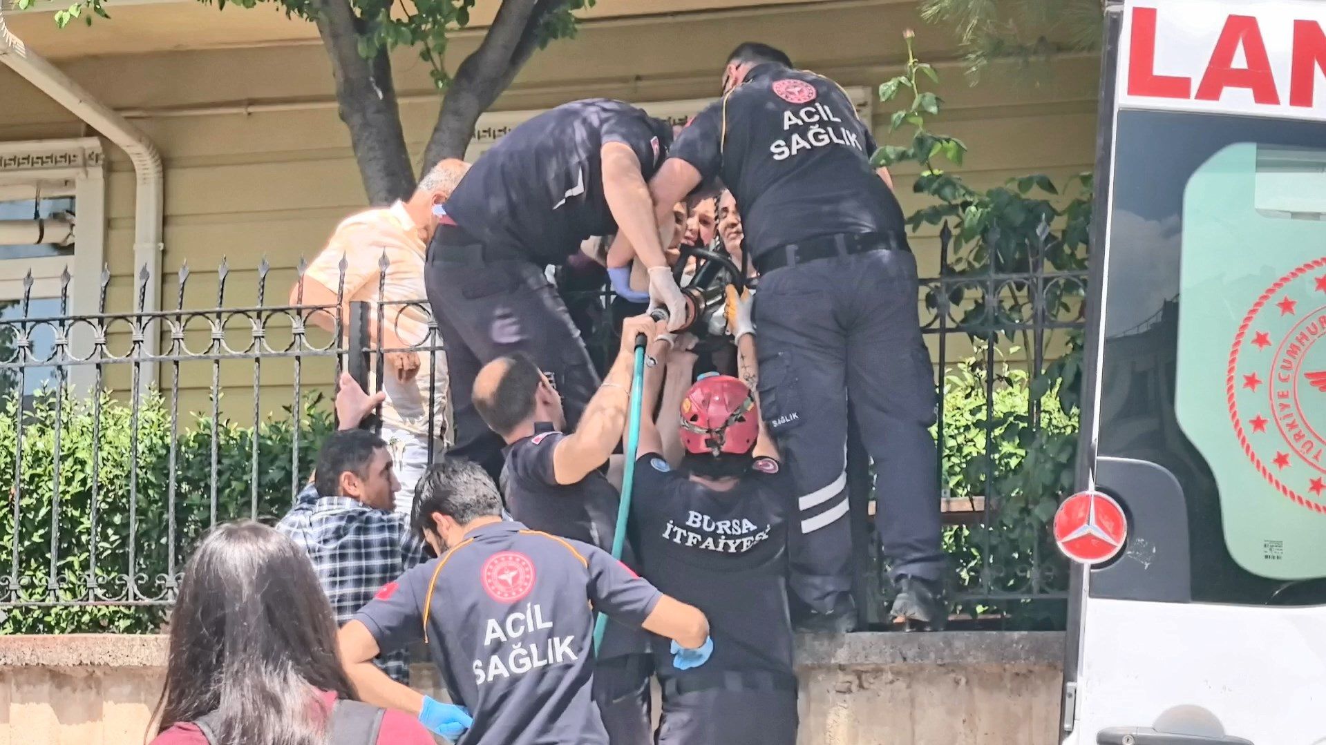 İnegöl’ün Fatih Mahallesi’nde meydana gelen bir olayda 3 katlı bir apartmanın bahçesinde oynayan Asaf O., duvardan atlamak isterken sağ bacağına korkuluk demiri saplandı.