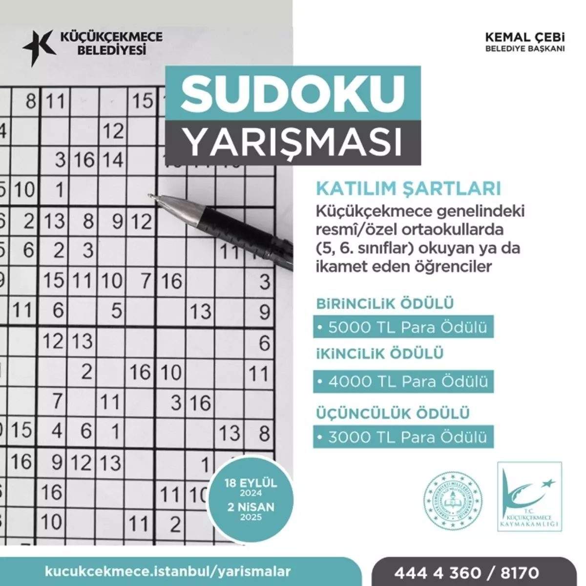 İlkokul 2,3,4 ve ortaokul öğrencilerinin katılabileceği yarışma, ilkokul ve ortaokul olmak üzere iki kategoride gerçekleştirilecek. Başvurular 11 Nisan 2025’e dek sürecek. Ödüllü yarışmalara başvurular Küçükçekmece Belediyesi’nin sosyal medya hesapları üzerinden online olarak yapılacak. Ayrıca detaylı bilgi almak isteyenler telefonla arayabilir.