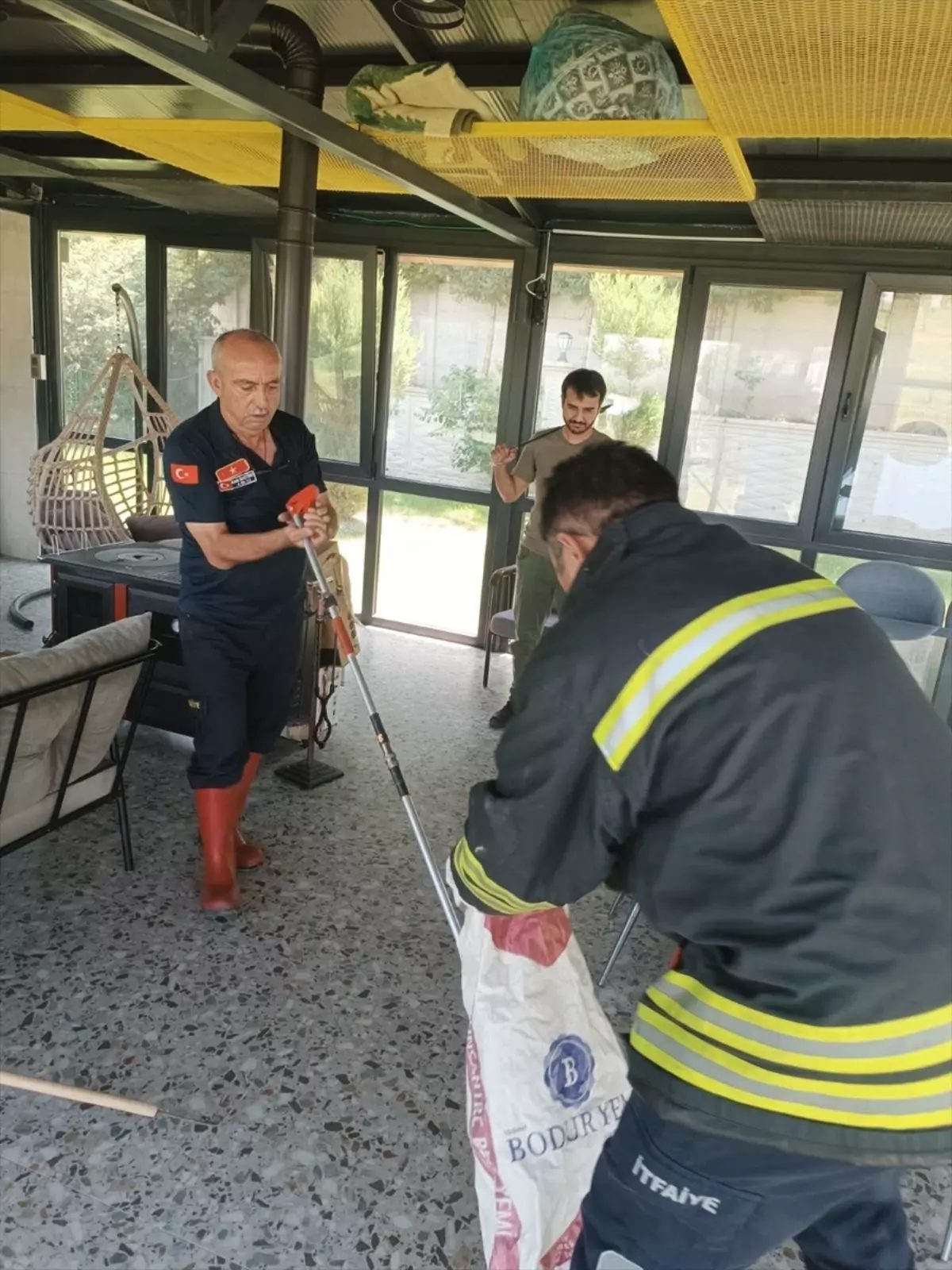 İtfaiye ekiplerince yakalanan yılan, doğal ortamına bırakıldı.