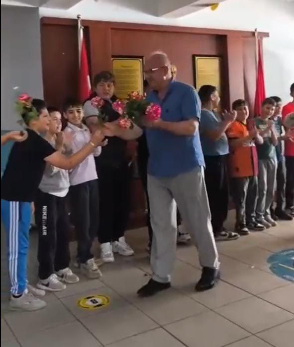 Eskişehir Sarıcakaya’da bulunan İmam Hatip Ortaokulu’nda 2 yıldır okul müdürü olarak görev yapan ve eğitim yılının sonunda emekliye ayrılacağı öğrenilen 65 yaşındaki Vedat Duman’a öğrencileri sürpriz bir veda etkinliği düzenledi. Okula gelen Duman, öğrencileri tarafından kapıda meşale ve konfetilerle karşılanırken bu ünlü müzik grubu Zakkum’un seslendirdiği ‘Hatıran Yeter’ isimli şarkı çalındı.