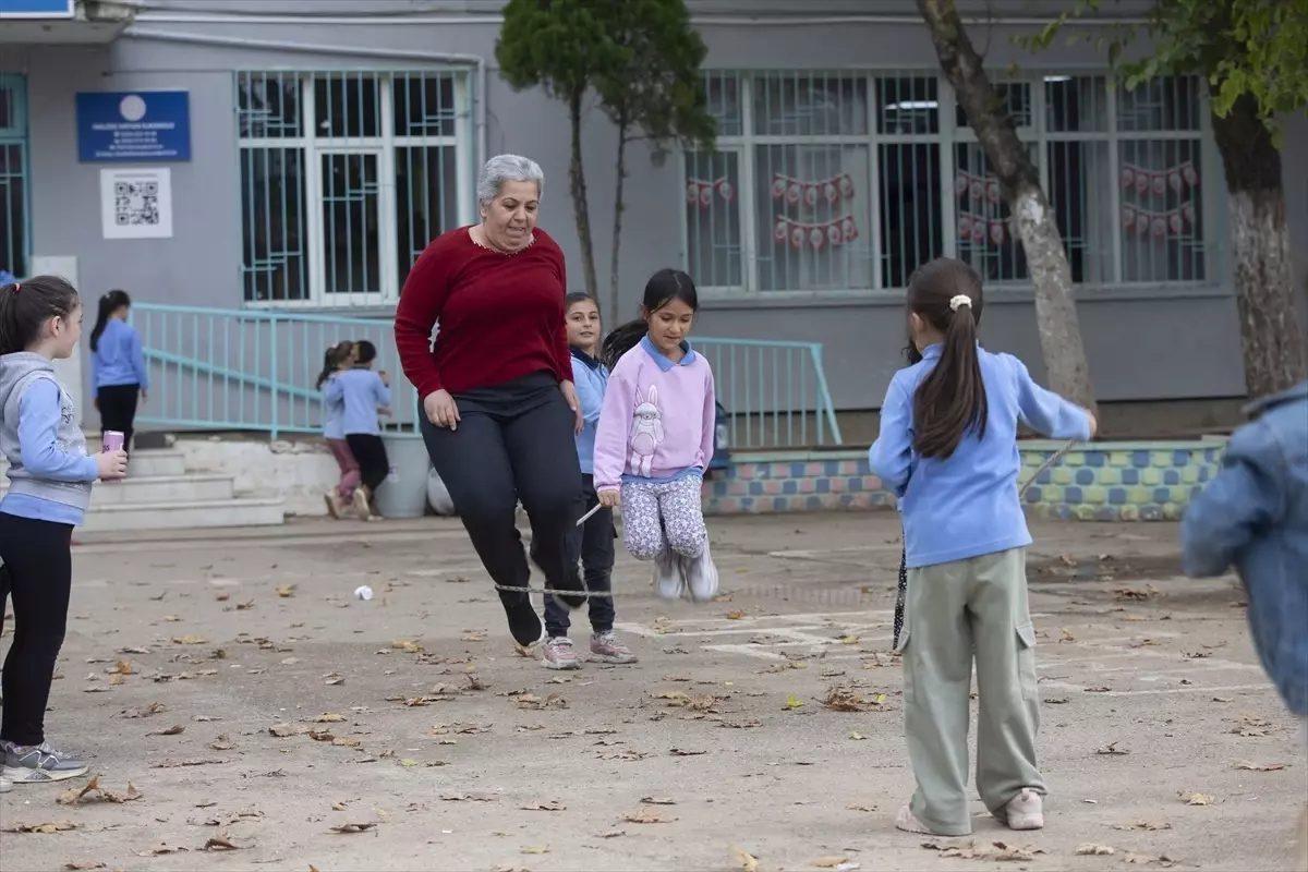 Öğrencilerinin yanından ayrılmadığı Güven, bazen teneffüs aralarını çocuklarla bahçede oyun oynayarak geçiriyor.