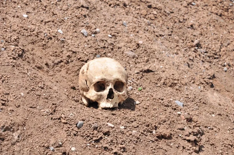 Okul inşaatının temel kazısında insan kafatası ve çok sayıda kemik bulundu.