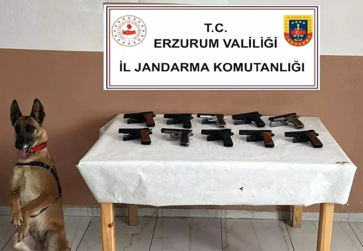 Erzurum İl Jandarma Komutanlığına bağlı Oltu İlçe Jandarma Komutanlığınca Oltu ilçesinde Bomba Arama Köpeği Yazı’nın da katıldığı operasyon neticesinde, 10 adet 9 mm çapında ruhsatsız Browning ve MP92 marka tabanca ile 10 adet şarjör ele geçirildi.