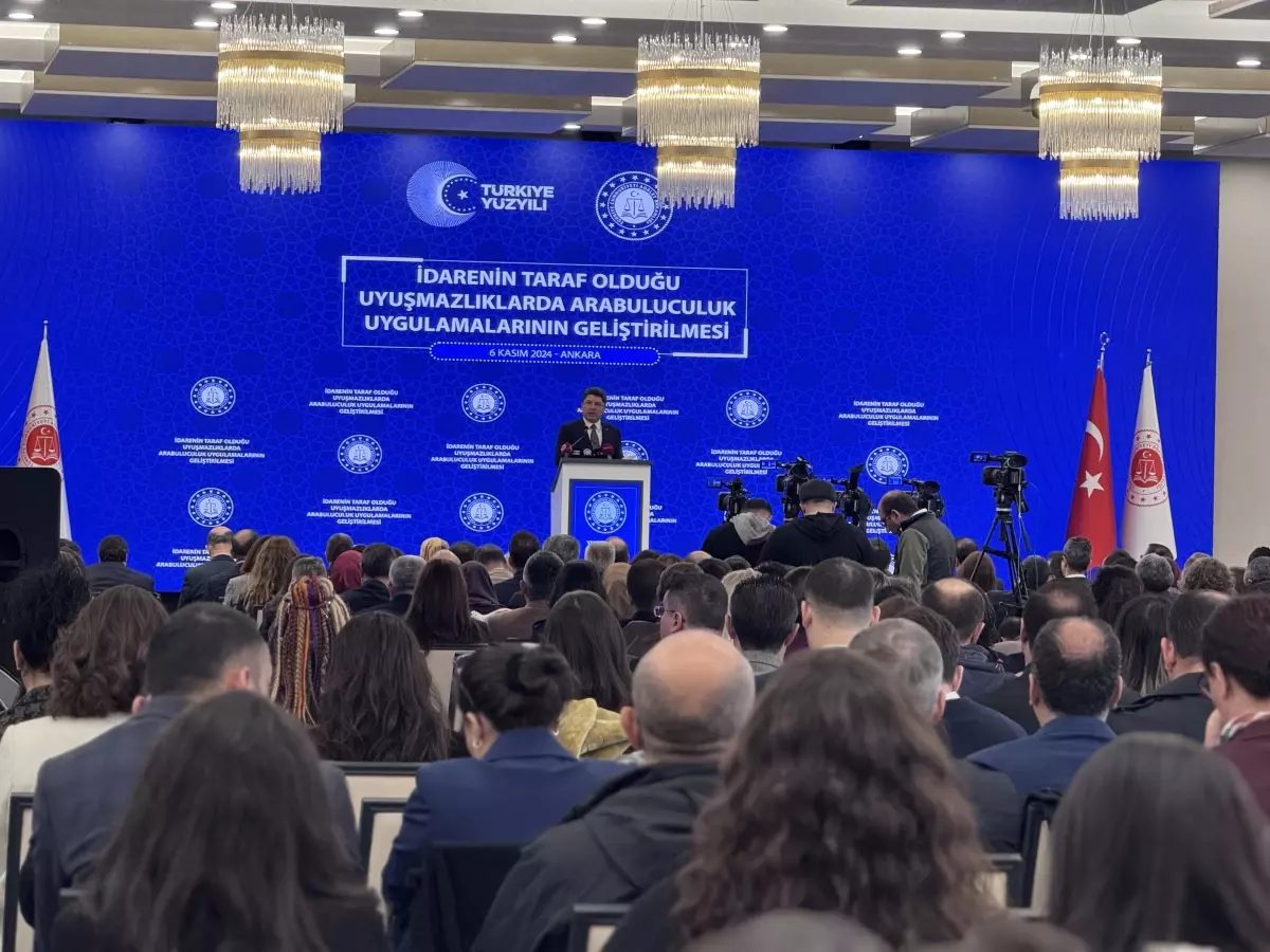 Adalet Bakanı Yılmaz Tunç, Dikmen Hakim Evi’nde düzenlenen ‘İdarelerin Taraf Olduğu Uyuşmazlıklarda Arabuluculuk Uygulamalarının Geliştirilmesi Sempozyumu’nda konuştu. Bakan Tunç, dünyada da son yıllarda hukuk uyuşmazlıklarında alternatif çözüm yöntemi olarak ara buluculuk sisteminin geliştirilmesiyle ilgili önemli ilerlemeler olduğunu söyleyerek, “Ve bu anlamda biz mevzuatımıza, hukuk sistemimize, hukuk uyuşmazlıklarında ya da ceza uyuşmazlıklarında alternatif çözüm yöntemlerinin sisteme dahil edilmesi noktasında geriye de kaldık, bu noktada geç de kaldık. Geç kalmış olmak demek, burada özellikle bu konuda daha çabuk, daha hızlı davranmamızı gerektirecek çalışmaları da geriye bırakmamızı gerektirmez” dedi.