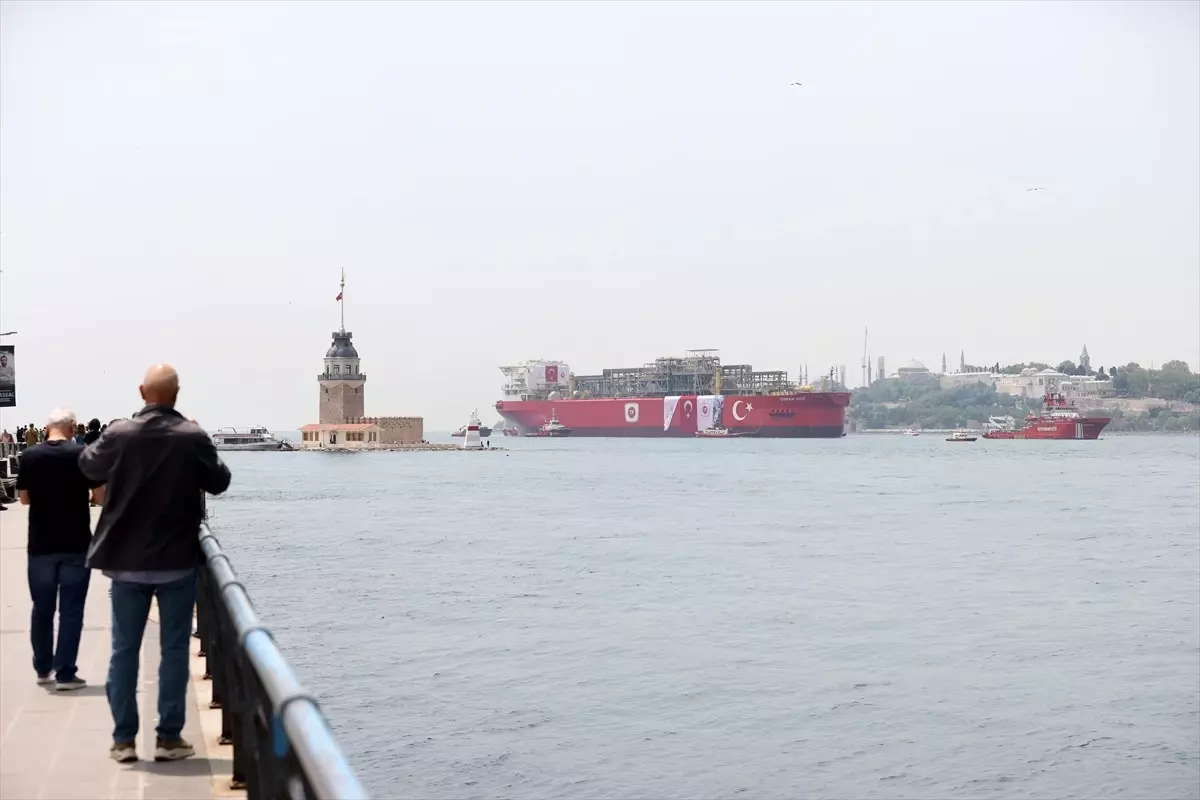 İstanbul Boğazı’ndan geçişini sürdüren Türkiye’nin ilk yüzer doğal gaz üretim platformu (FPU) Osman Gazi’ye, 9 kılavuz kaptan ile Nene Hatun Acil Müdahale Gemisi, römorkörler ve can kurtarma botu eşlik ediyor.
