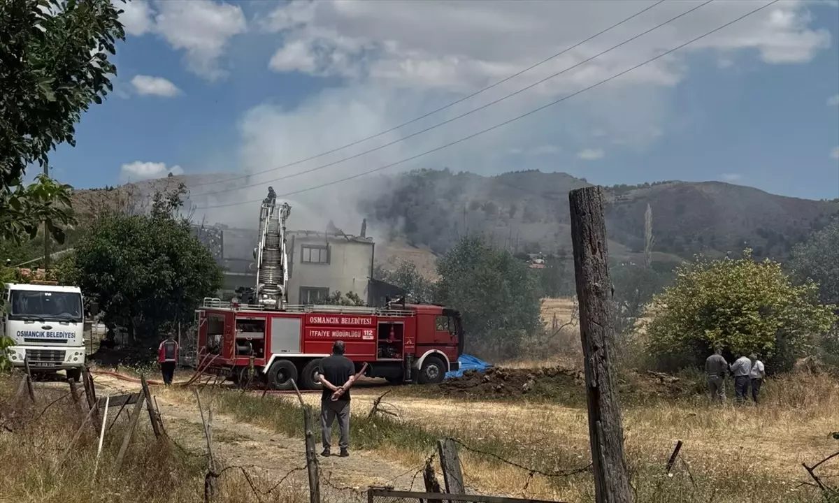 Ekili araziye sıçramadan Osmancık Belediyesi itfaiye ekiplerince söndürülen yangında binada hasar meydana geldi.
