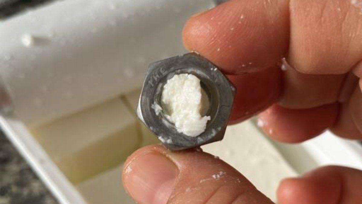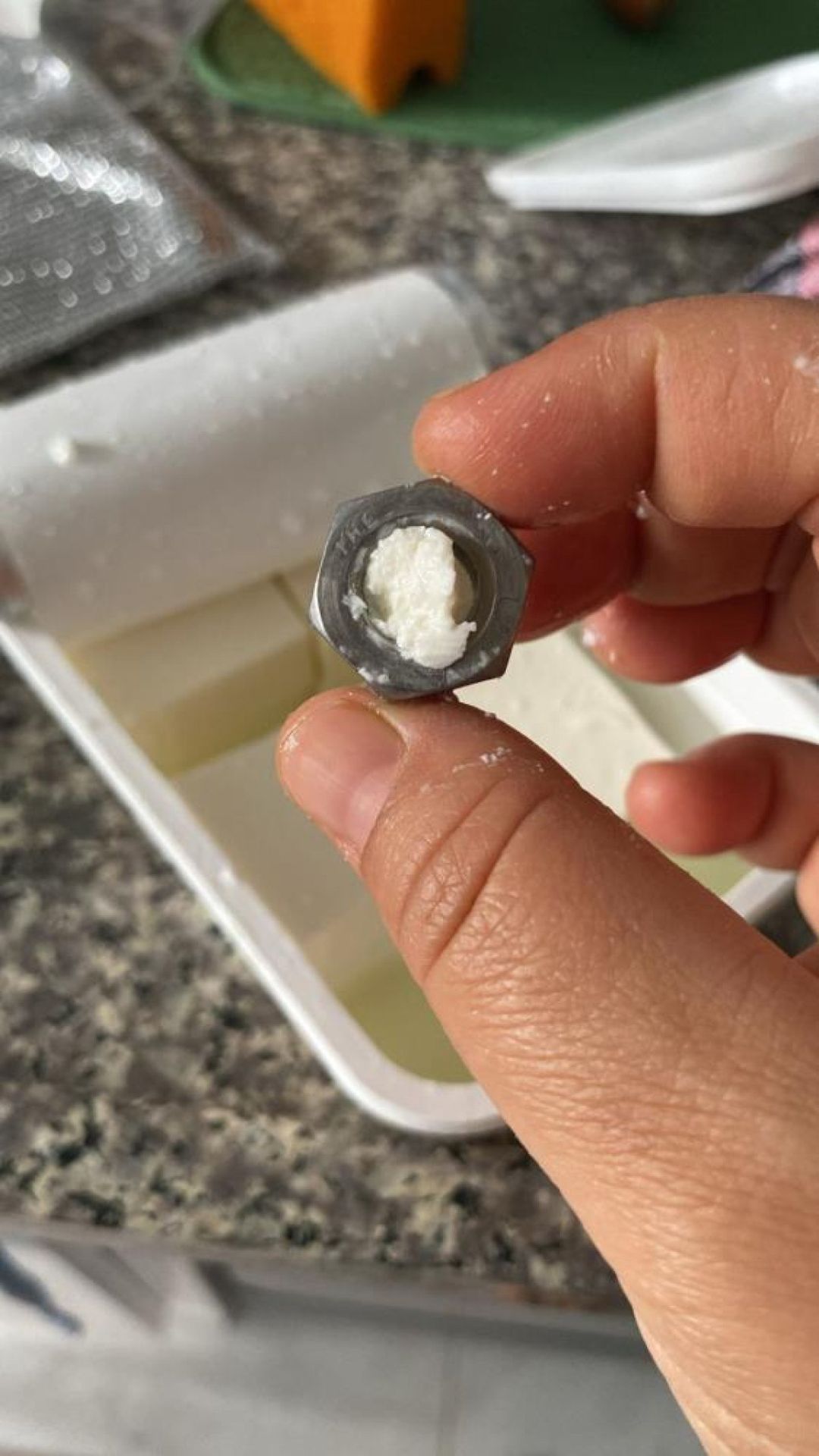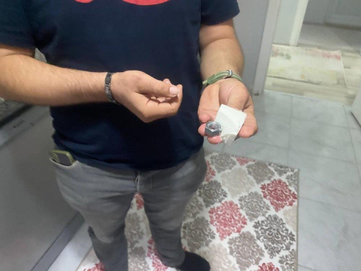 Çil’in eşi kahvaltı yapmak için kabı açtığı esnada peynirin içinden metal somun çıktı.