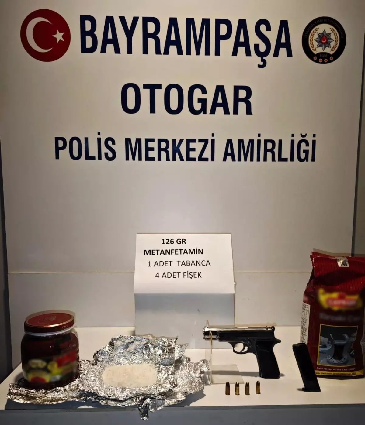 Kolide bulunan çay ve salça kutusuna zulalanmış 126 gram metamfetamin, 1 ruhsatsız tabanca, 4 fişek bulundu. Kimlik tespit edilen S.T. (22), B.M. (21) ve S.T. (23) ise gözaltına alındı. Emniyetteki işlemlerinin tamamlanmasının ardından 3 şüpheli, “6136 sayılı kanuna muhalefet” ve “Uyuşturucu veya uyarıcı madde imal ve ticareti” suçundan adliyeye sevk edildi. 3 şüpheli sevk edildikleri adli makamlarca tutuklanarak cezaevine gönderildi. – İSTANBUL