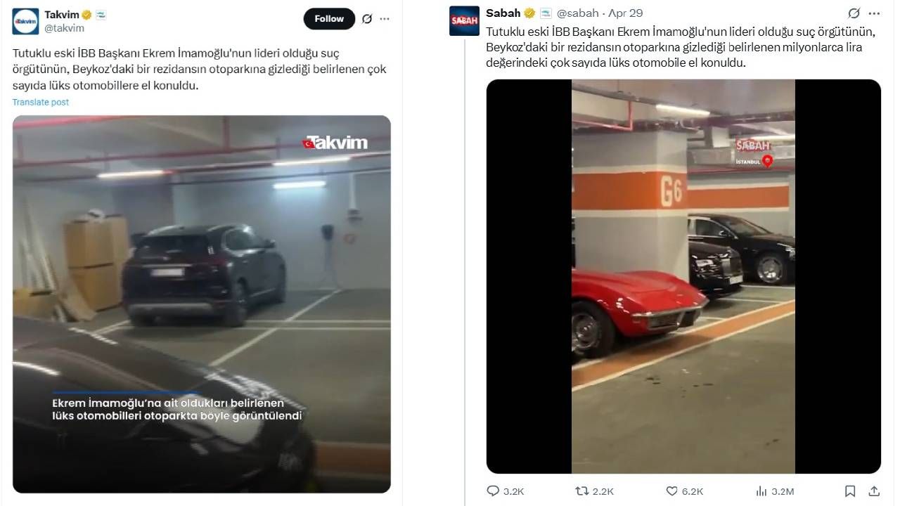 Oysa görüntüler yayınlandığında lüks araçlar Beykoz’daki bir rezidansın otoparkında gizlendi diye haber yapılmıştı.
