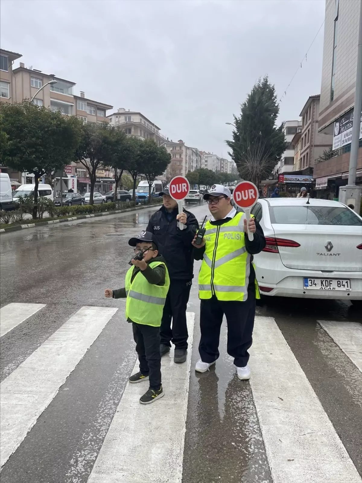 Daha sonra üniforma giydirilerek polis araçlarına bindirilen çocuklar, Sadri Artunç Caddesi’ndeki yaya geçidinde ekipler gözetiminde trafikte uygulama yaptı.