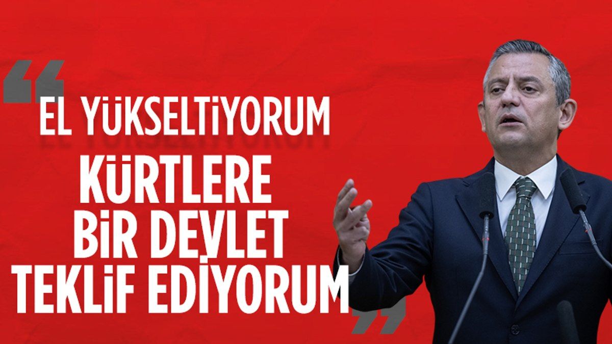 “Hodri meydan” diyerek Bahçeli’nin Öcalan’a Meclis’e gelerek örgüte silah bırakma çağrısı yapması çağrısına dair konuşan Özel, “Ben de el yükseltiyorum, Kürtlere Türkiye Cumhuriyeti devletinin sahibi olmayı teklif ediyorum” ifadelerini dile getirdi.
