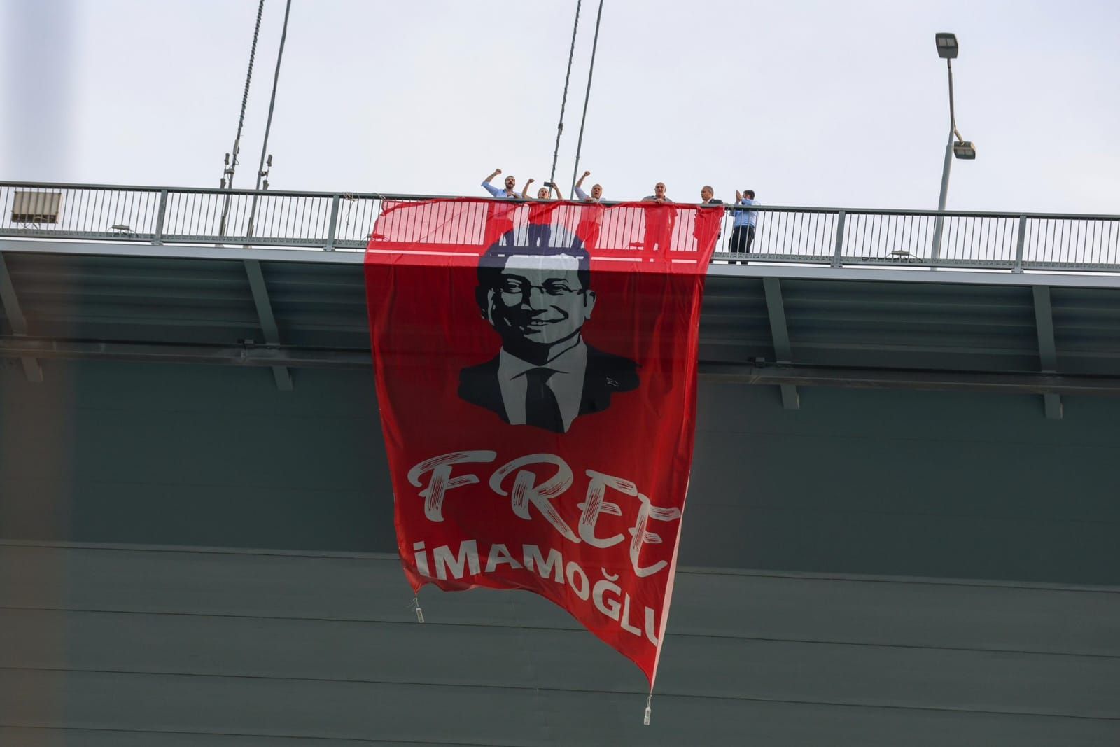 CHP Genel Başkanı Özgür Özel dün Sosyalist Enternasyonal toplantıları kapsamında İstanbul’a gelen üyeleri tekneyle boğaz turuna çıkardı. Bu esnada 15 Temmuz Şehitler Köprüsü’nde bulunan CHP Milletvekilleri Mahmut Tanal, Suat Özçağdaş, Ali Gökçek, İlhami Özcan Aygun, Ahmet Baran Yazgan ve Nimet Özdemir ‘Free İmamoğlu'(İmamoğlu’na özgürlük) yazılı bir pankart astı.