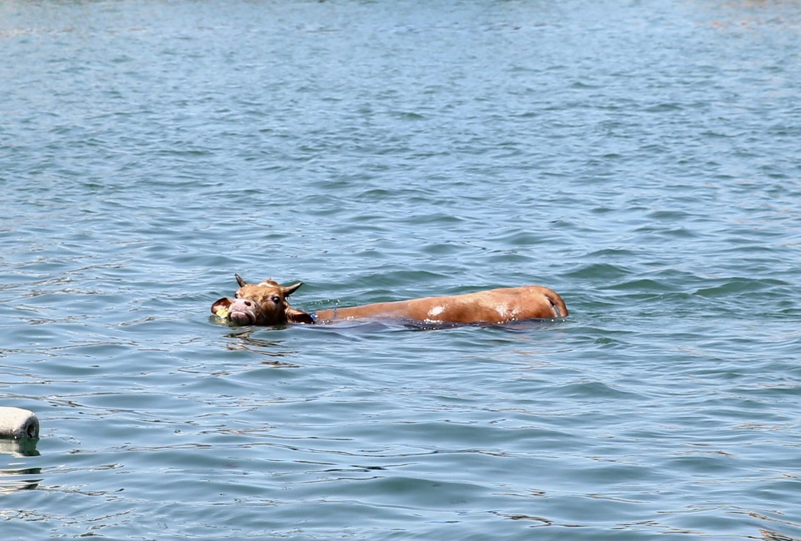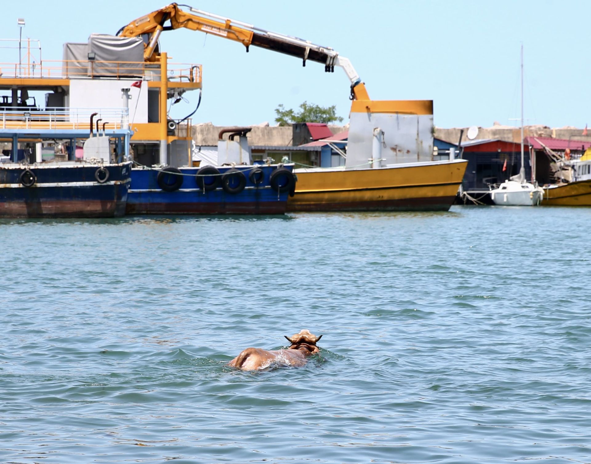 Trafiğin ters yönünde ilerleyen kurbanlık, daha sonra Kumyalı Balıkçı Barınağı’ndan denize atladı.