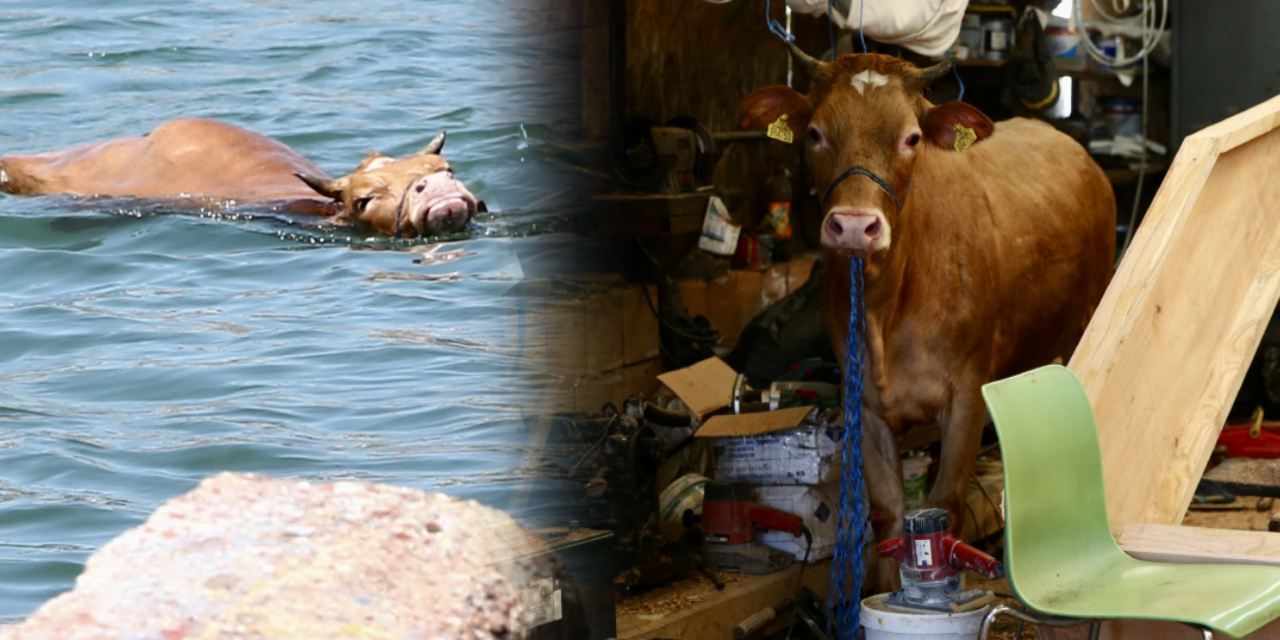 Yaklaşık 20 dakika denizde kalan hayvan, kıyıya çıkarak barınaktaki bir balıkçı kulübesine sığındı.