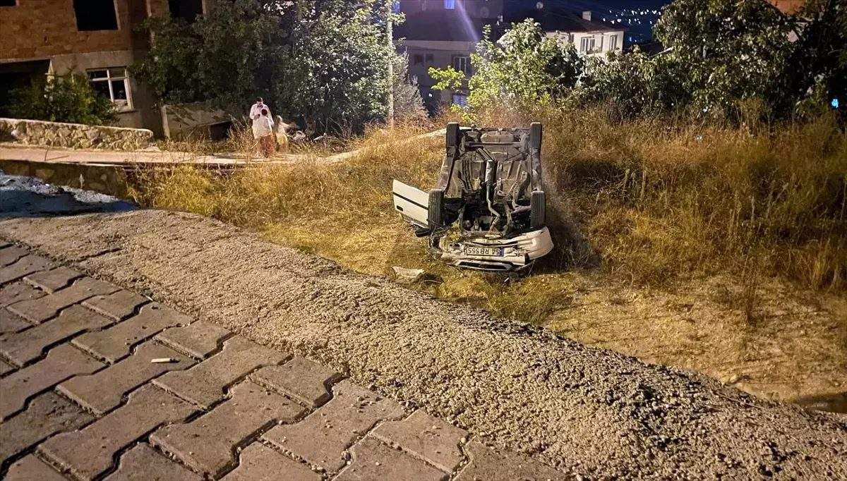 Elperek Mahallesi’nde seyir halindeki 54 RB 555 plakalı otomobil, sürücüsünün direksiyon hakimiyetini kaybetmesi sonucu yaklaşık 3 metre yükseklikten bir arsaya devrildi.