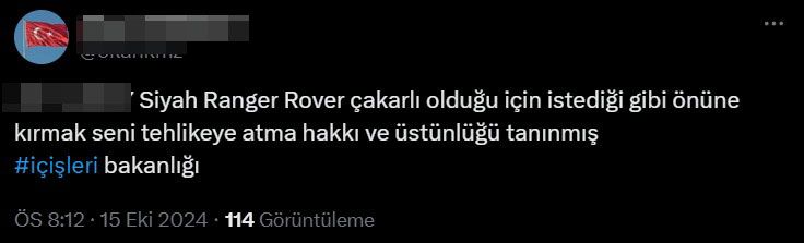 Hatta, Çiçek’in işaret ettiği araçla ilgili sosyal medyada plakasıyla birlikte, “34 XX …7 plakalı siyah Range Rover çakarlı olduğu için istediği gibi önüne kırma seni tehlikeye atma hakkı ve üstünlüğü tanınmış” ifadeleriyle paylaşılmıştı.