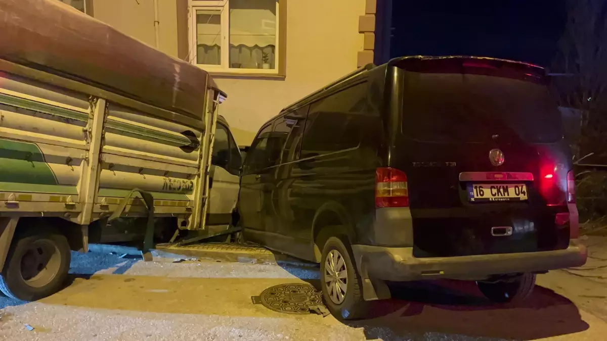 Kaza, saat 01.30 sıralarında Yıldırım ilçesi Zümrütevler Mahallesi meydana geldi. 12. Yiğit Sokak’ta yokuşta park halindeyken hareket eden 16 J 6456 plakalı kamyonet, 16 SNP 20 plakalı otomobile, ardından da 3. Erikli Sokak’taki 16 CKM 04 plakalı minibüse çarptı. Kamyonet, önünde sürüklediği minibüsle 4 katlı apartmanın giriş katındaki dairenin salonuna girdi. Binada oturanlar gürültüyle uyanıp ihbarda bulundu. Bunun üzerine adrese itfaiye, polis ve sağlık ekipleri sevk edildi. Ekipler bölgede önlem aldı. Dairede ve araçlarda hasar oluşurken, polis, kazayla ilgili inceleme başlattı.