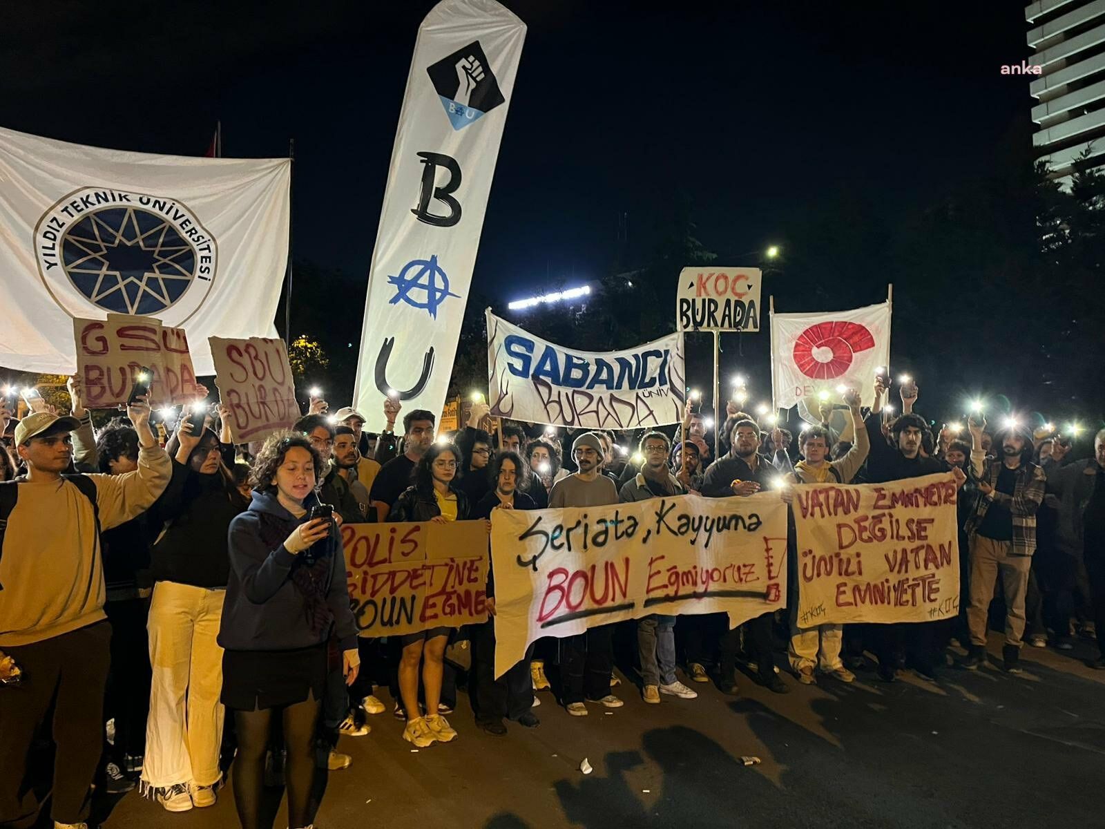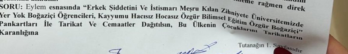 “Erkek şiddetini ve istismarı meşru kılan zihniyete üniversitemizde yer yok, Kayyumu hacısız hocasız özgür bilimsel eğitim özgür Boğaziçi, Tarikatlar ve cemaatler dağıtılsın” yazılı pankartlar da öğrencilere sorulan sorular arasındaydı.