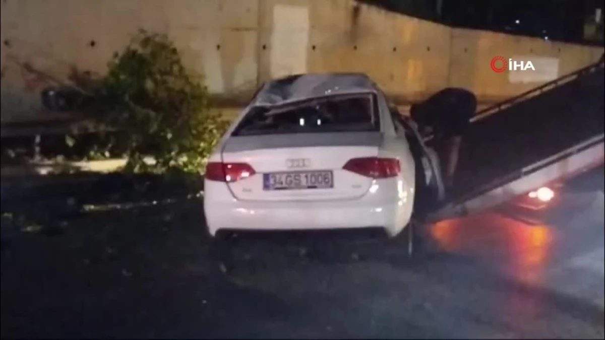 Pendik'te bir otomobil, sürücüsünün direksiyon hakimiyetini kaybetmesiyle bariyerleri aşarak caddeye devrildi. Kaza sonucu bir kişi hafif yaralandı.