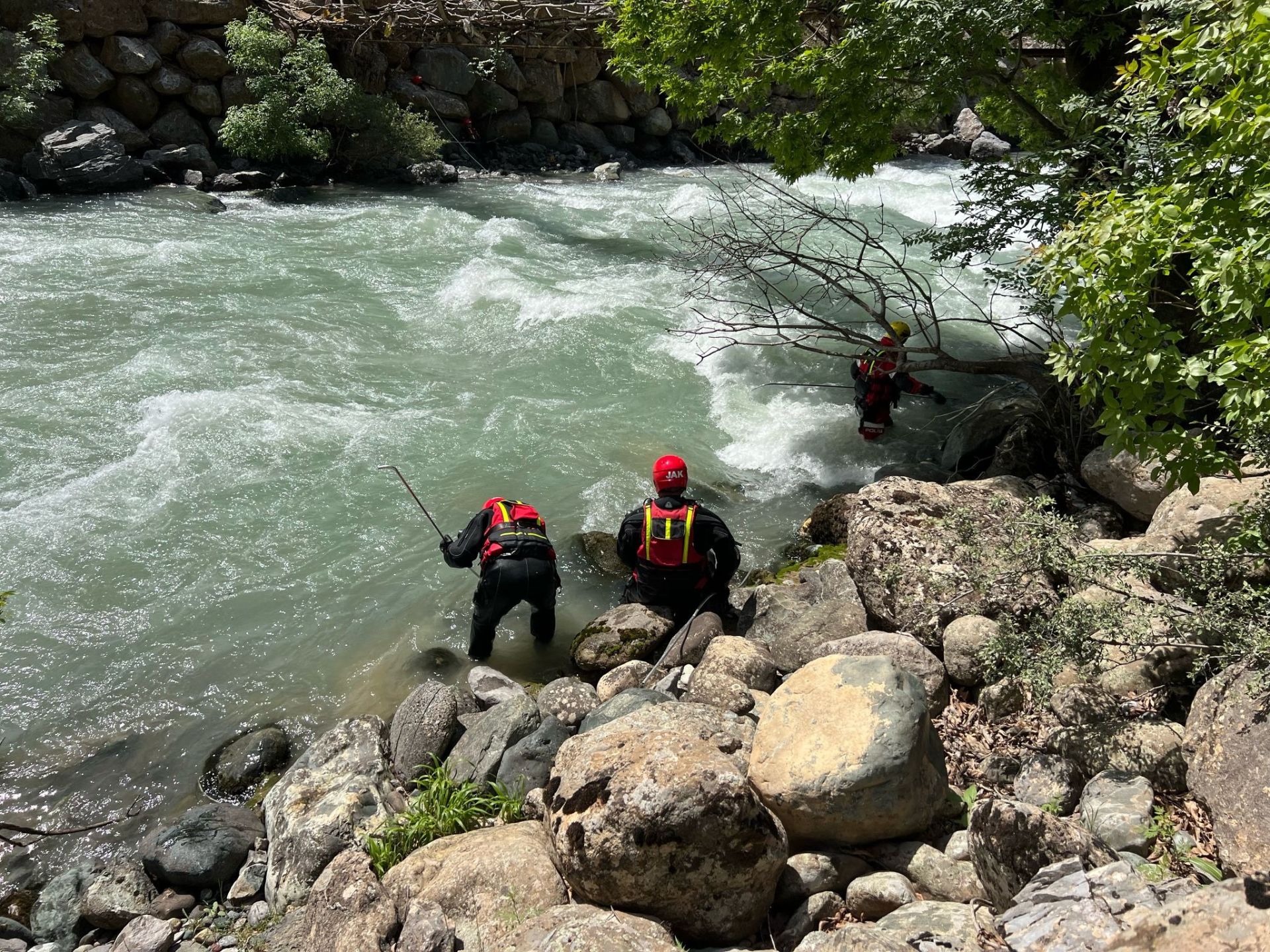 Bugün de devam eden arama çalışmalarına Van İl Emniyet Müdürlüğü Sualtı Arama Kurtarma dalgıç ekipleri de katıldı. Ekipler, dereye dalışlar yapıp, demir çubuklarla kontroller yaparak İbrahim Kom’u arıyor.