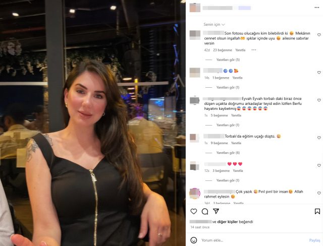 Berfu Hatipoğlu’nun kazada hayatını kaybetmeden yaklaşık 14 saat önce yaptığı paylaşım yürekleri yaktı. Fotoğrafın altına yapılan, “Son fotoğrafı olacağını kim bilebilirdi ki” yorumu boğaz düğümledi. Birçok kişi fotoğrafın altına başsağlığı ve sabır dileklerinde bulundu.