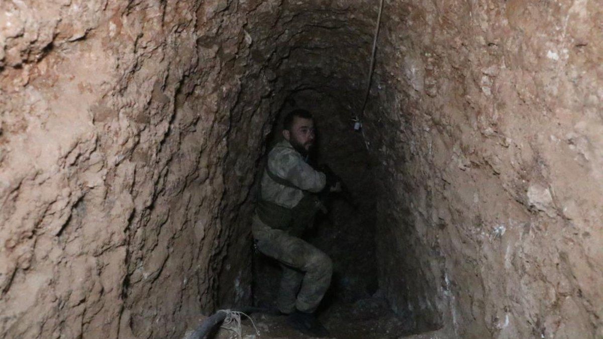 Suriye Milli Ordusu’nun (SMO) Özgürlük Şafağı Operasyonu kapsamında terör örgütü PKK/YPG’den kurtardığı Tel Rıfat’ta kilometrelerce uzunluğunda tüneller bulunmuştu.