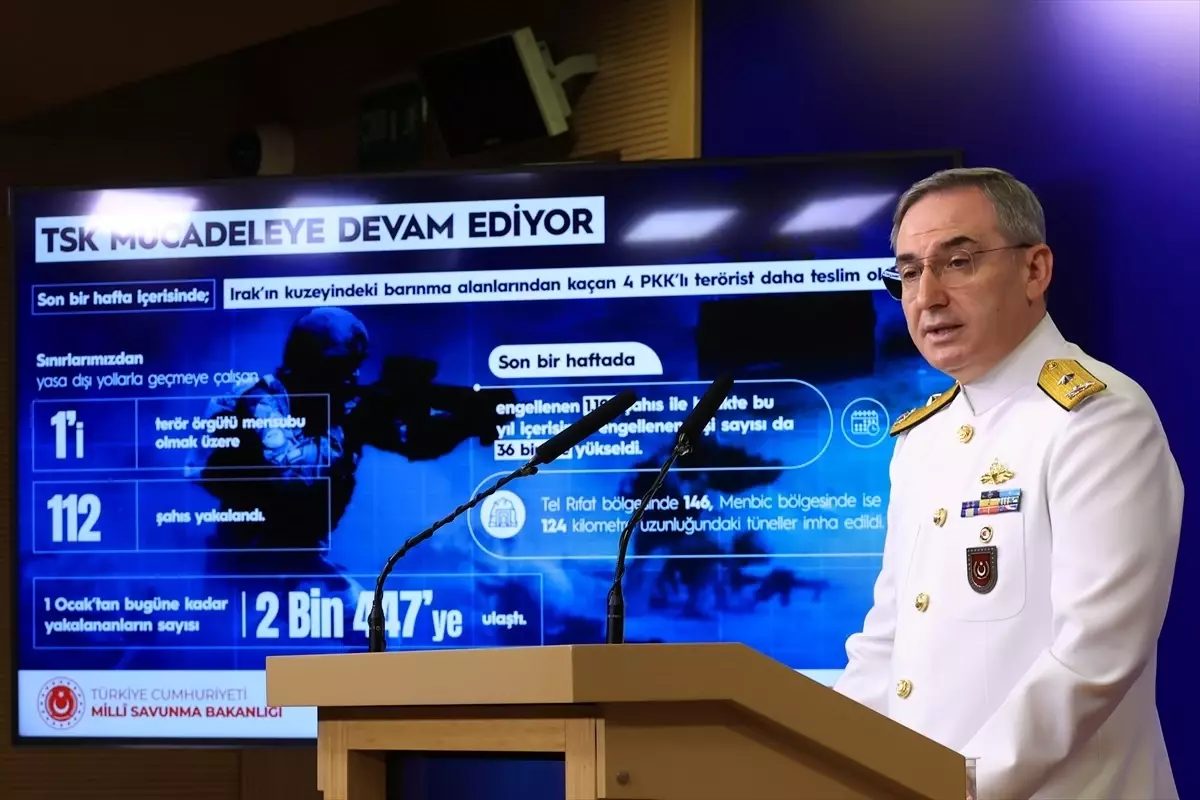 Türk Silahlı Kuvvetleri’nin (TSK) devam eden operasyon, arama-tarama ve sınır güvenliği faaliyetleri kapsamında, son bir hafta içerisinde Irak’ın kuzeyindeki barınma alanlarından kaçan 4 PKK’lı teröristin daha teslim olduğunu belirten Aktürk, “Sınırlarımızdan yasa dışı yollarla geçmeye çalışan 1’i terör örgütü mensubu olmak üzere 112 şahıs yakalanmış, 1 Ocak’tan bugüne kadar yasa dışı yollarla geçmeye çalışırken yakalananların sayısı 2 bin 447’ye, son bir haftada engellenen 1192 şahıs ile birlikte bu yıl içerisinde engellenen kişi sayısı da 36 bin 3’e ulaşmıştır.” dedi.