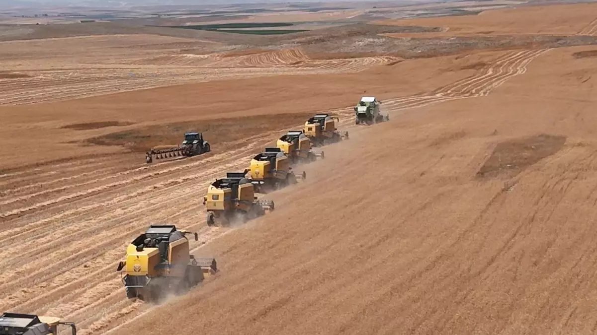 Ankara'nın Polatlı ilçesinde buğday ve arpa hasadı, 24 biçerdöverle %30 artışla sürdürülüyor.