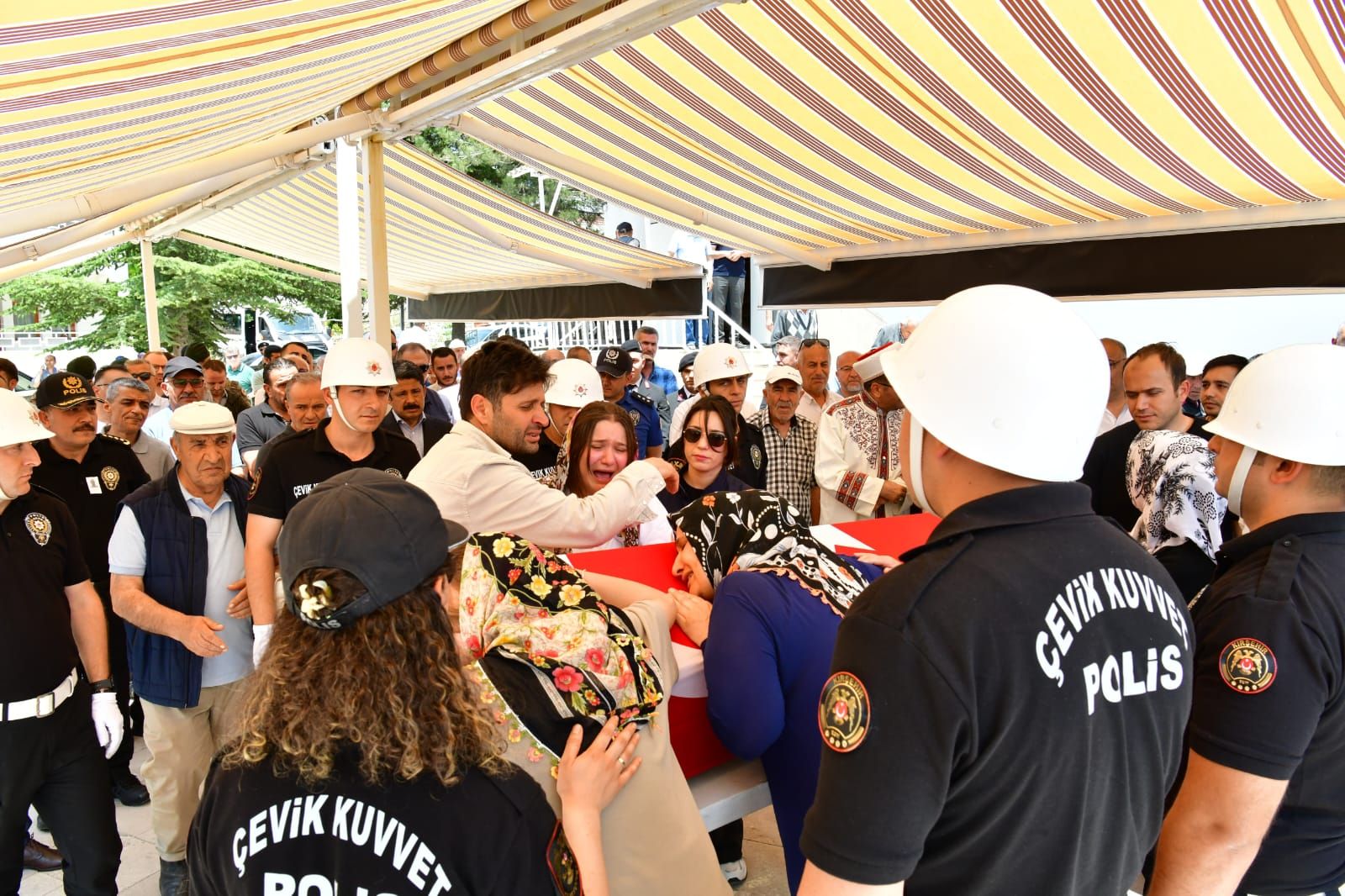 Polis memuru Yusuf Taşpınar için Mucur merkez Çarşı Camisi’nde cenaze töreni düzenlendi. Törene; Kırşehir Valisi Murat Sefa Demiryürek, İl Emniyet Müdürü Erdoğan Kartal, Mucur Belediye Başkanı Ali Şahin, Yusuf Taşpınar’ın ailesi, yakınları ve çok sayıda vatandaş katıldı. Taşpınar’ın cenazesi, Mucur Hamidiye Mezarlığı’na defnedildi.