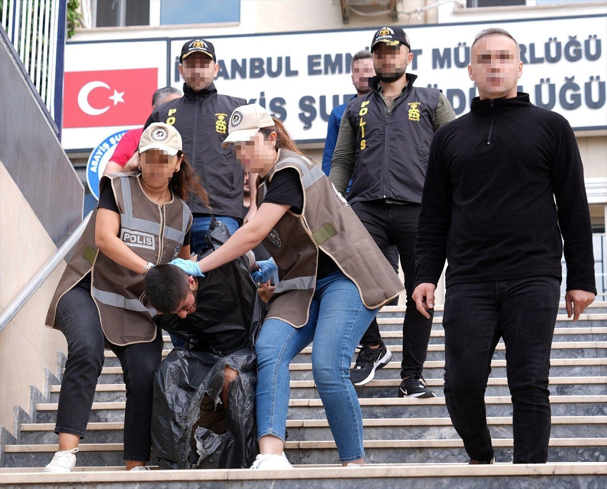 Olayın ardından hemen yakalanan şüpheli, Asayiş Şube Müdürlüğü Cinayet Büro Amirliğindeki tamamlanan işlemlerinin ardından siyah çöp poşeti geçirilmiş halde kadın polis memurları tarafından Çevre, Doğa ve Hayvanları Koruma Büro Amirliği’nin aracına bindirilerek Anadolu Adliyesi’ne sevk edildi.