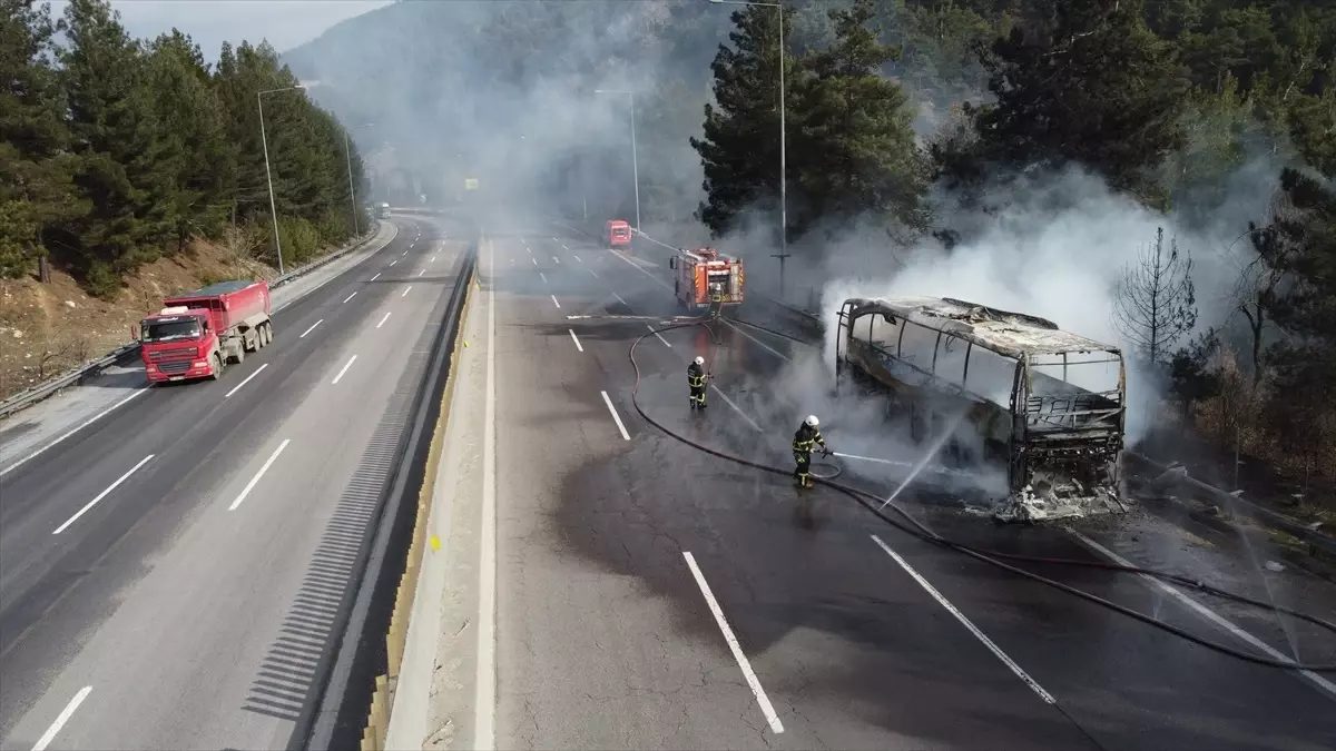 Adana-Pozantı Otoyolu'nda yolcu otobüsünde çıkan yangın, itfaiye ekiplerince söndürüldü.