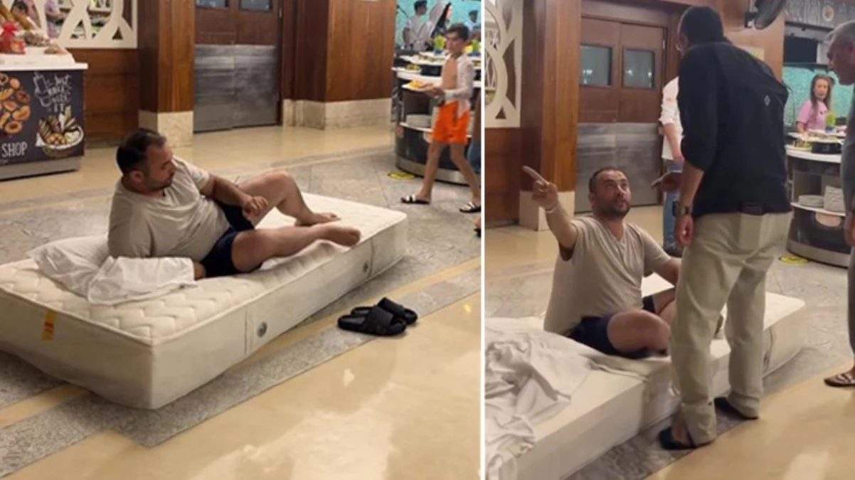 Antalya’da konakladığı otel odasındaki klimanın bozuk olduğunu söyleyen tatilci, sorununa çözüm bulunmayınca durumu protesto etti. Odasındaki yatağı, otelin en serin yeri olan restorana götüren adam, herkesin içinde yatarak hem tepki gösterdi hem de sorununa çözüm istedi.