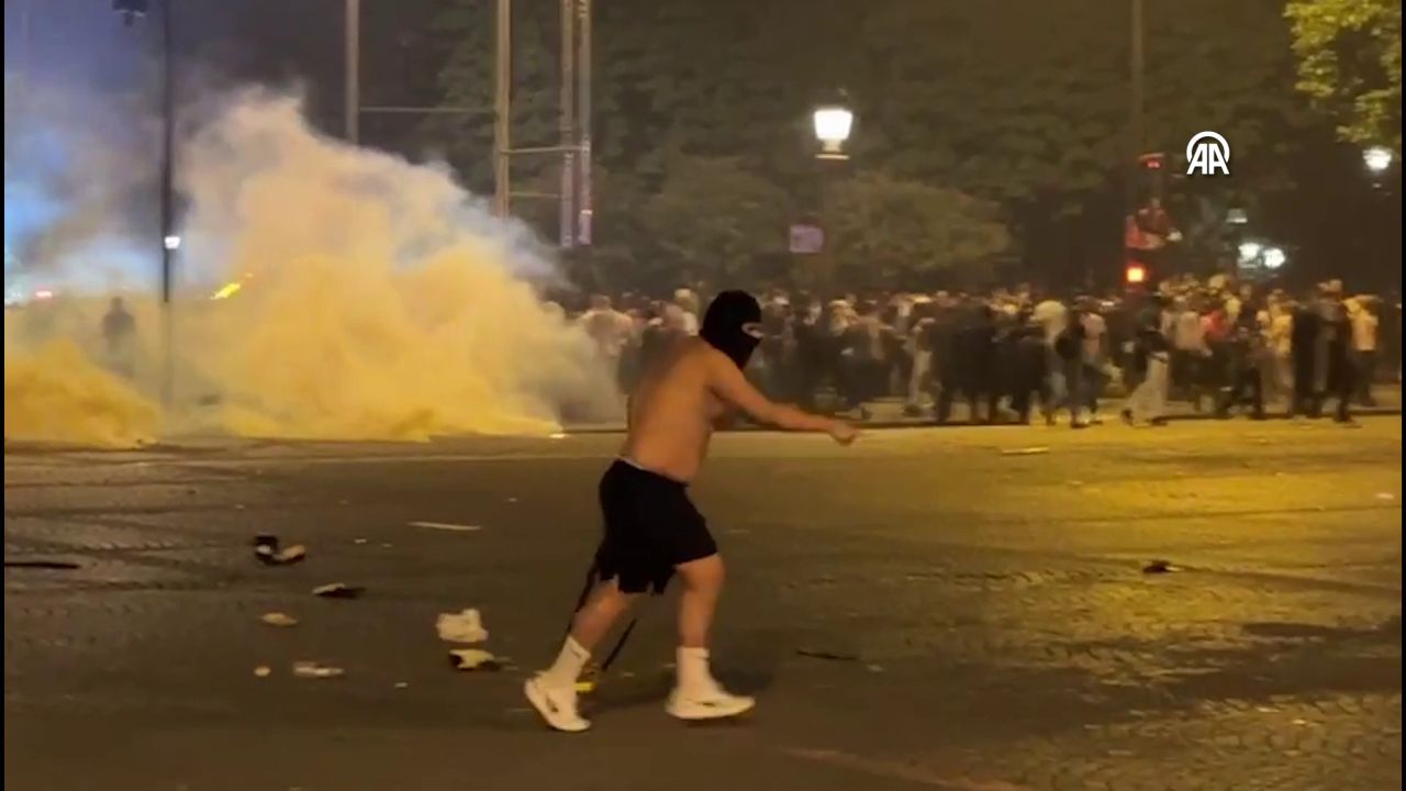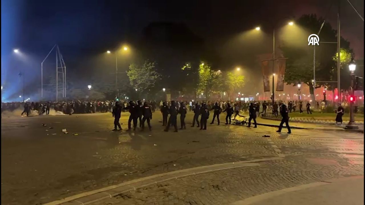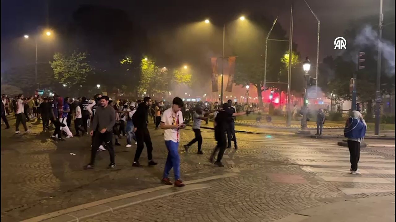 Ancak kutlamaların ilerleyen saatlerinde tansiyon yükseldi. Polis, göstericilerin havai fişek atarak müdahalelere direnmesi üzerine biber gazı ve copla kalabalığı dağıtmaya çalıştı. Parc des Princes çevresinde bazı barikatlar kuruldu, bir aracın ateşe verildiği bildirildi. Olay yerine sevk edilen itfaiye ekipleri yangına müdahale etti.