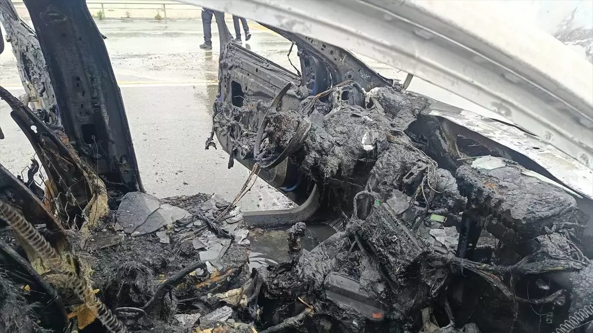 İtfaiye ekibince söndürülen yangında araç kullanılamaz hale geldi.