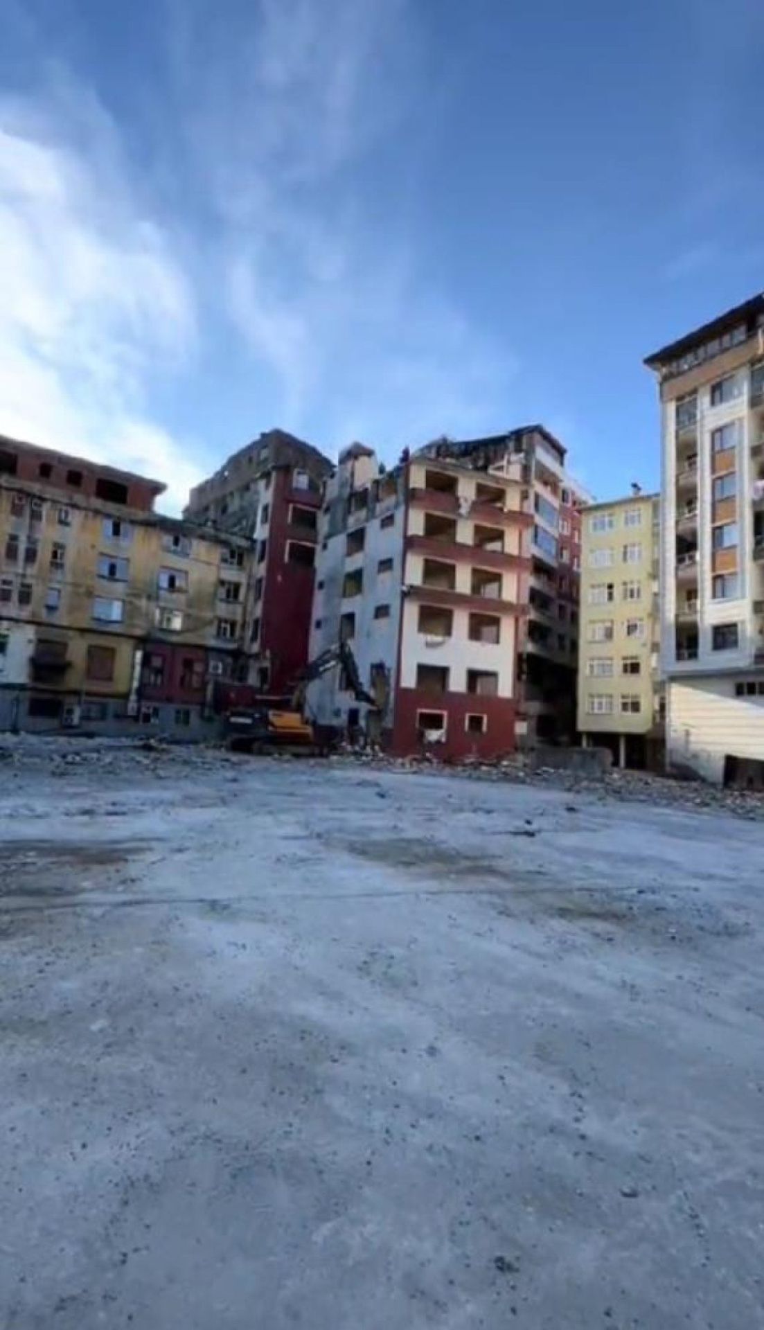 O anları kayda alan şahıs “Böyle bir yıkım başka bir yerde göremezsiniz. Adam alttan yıkıyor, üstte adamlar var, bakın. Burası Rize; Kurtuluş ilköğretim Okulu’nun yeri. Kepçe yıkıyor, adamlar üstte. Gerisini siz düşünün” diyerek şaşkınlığını dile getiriyor.